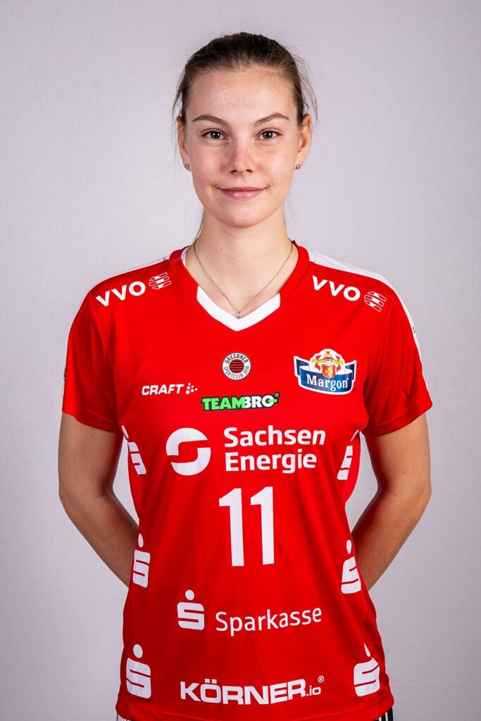 Für die 20-jährige Zuspielerin ist es derweil die dritte Station in der Volleyball-Bundesliga. Im Sommer 2021 schloss sich die tschechische Nationalspielerin dem VC Wiesbaden an und landete da schon im Notizbuch unserer Sportkoordinatorin Mareike Hindriksen. Aber auch andere Klubs wurden auf die junge, 1,78 Meter große Zuspielerin aufmerksam und so schloss sich Květa Grabovská in der letzten Saison dem Dresdner SC an und bekam dort schneller eine tragendere Rolle, als sie vielleicht gedacht hatte. Durch die Verletzung von Sarah Straube jedenfalls stieg Květa Grabovská schnell zur ersten Zuspielerin an der Elbe auf verbunden mit entsprechender Verantwortung. Das meisterte die bald 21-jährige (Geburtstag ist der 29. Mai 2002) auf jeden Fall sehr gut schließlich konnte sie mit ihrem Team in dieser Saison die Bronzemedaille gewinnen.