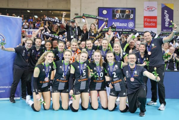 Aachen/Stuttgart. Auch im dritten Vergleich der beiden Halbfinalisten unterliegen die Ladies in Black Aachen dem Allianz MTV Stuttgart. Damit endet die Bundesligasaison für die Kaiserstädterinnen erneut mit einer Bronzemedaille – der zweiten in Folge, die mit Cheftrainerin Saskia van Hintum errungen wurde.