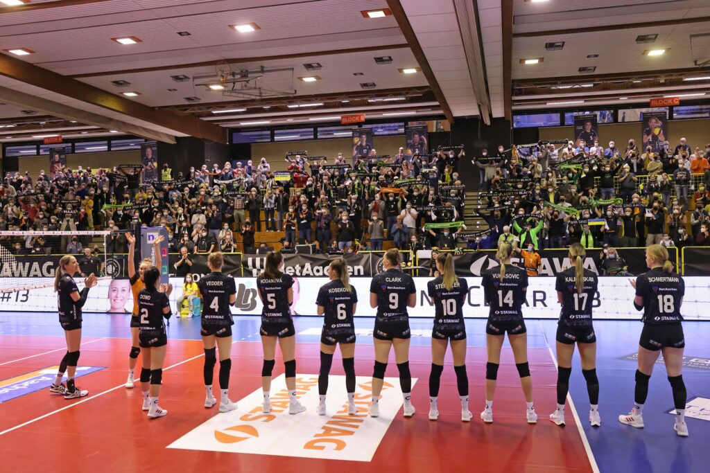Die Ladies in Black trafen auf die Potsdamerinnen erst vor Kurzem. Das Hinrundenspiel war schon ursprünglich erst für den 9. Februar geplant und vor genau einem Monat – am 19. März – waren die Brandenburgerinnen im Aachener Hexenkessel zu Gast. Die Bilanz der Hauptrunde unterstreicht die Favoritenrolle des SC Potsdam, denn man musste sich zweimal ohne Satzerfolg geschlagen geben.